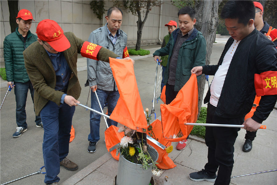 三、開(kāi)展“倡議文明緬懷,減少?gòu)U棄污染”拾撿垃圾志愿服務(wù)活動(dòng)。緬懷先烈活動(dòng)結(jié)束后,市建投公司志愿者們?cè)诹沂苛陥@內(nèi)開(kāi)展“倡議文明緬懷,減少?gòu)U棄污染”拾撿垃圾志愿服務(wù)活動(dòng)。每位志愿者都手持垃圾鉗,認(rèn)真將散落在紀(jì)念碑前以及隱藏在雜草中的廢棄鮮花、飲料瓶、紙張等垃圾拾撿起來(lái)放入提前準(zhǔn)備好的垃圾袋中。活動(dòng)持續(xù)一個(gè)小時(shí),志愿者們?cè)诩赖煜攘业耐瑫r(shí)以自己的實(shí)際行動(dòng)表達(dá)崇敬之情,并倡導(dǎo)以獻(xiàn)一束花、敬一杯酒、植一棵樹(shù)、清掃墓碑等方式寄托哀思,將祭拜逝者的傳統(tǒng)習(xí)俗以更加環(huán)保、健康、安全、文明的方式表達(dá),營(yíng)造文明祭祀的良好氛圍。