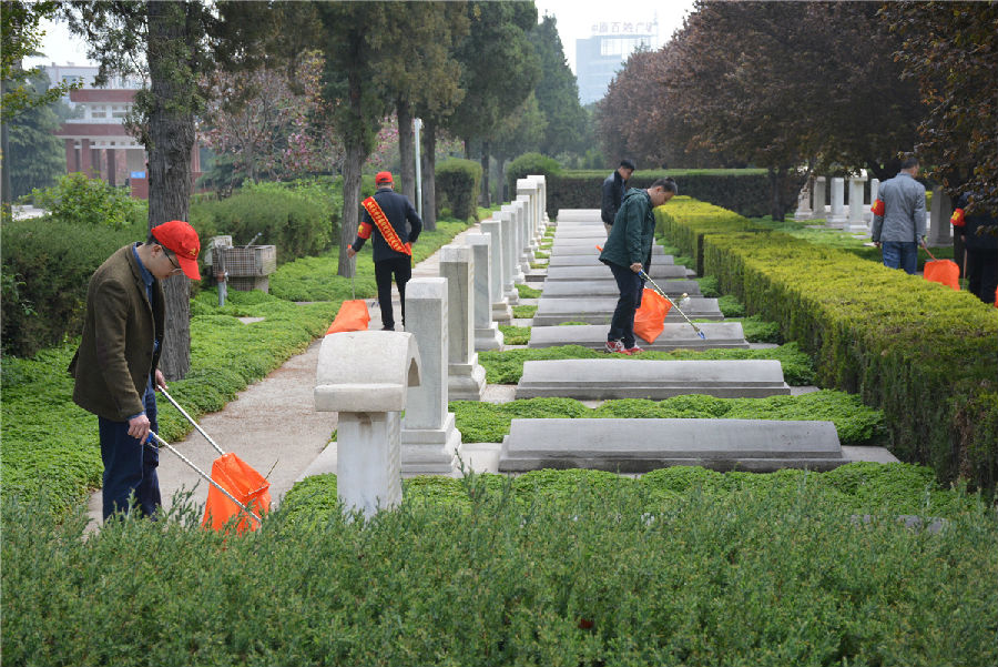 三、開展“倡議文明緬懷,減少廢棄污染”拾撿垃圾志愿服務(wù)活動(dòng)。緬懷先烈活動(dòng)結(jié)束后,市建投公司志愿者們在烈士陵園內(nèi)開展“倡議文明緬懷,減少廢棄污染”拾撿垃圾志愿服務(wù)活動(dòng)。每位志愿者都手持垃圾鉗,認(rèn)真將散落在紀(jì)念碑前以及隱藏在雜草中的廢棄鮮花、飲料瓶、紙張等垃圾拾撿起來放入提前準(zhǔn)備好的垃圾袋中?;顒?dòng)持續(xù)一個(gè)小時(shí),志愿者們在祭奠先烈的同時(shí)以自己的實(shí)際行動(dòng)表達(dá)崇敬之情,并倡導(dǎo)以獻(xiàn)一束花、敬一杯酒、植一棵樹、清掃墓碑等方式寄托哀思,將祭拜逝者的傳統(tǒng)習(xí)俗以更加環(huán)保、健康、安全、文明的方式表達(dá),營造文明祭祀的良好氛圍。