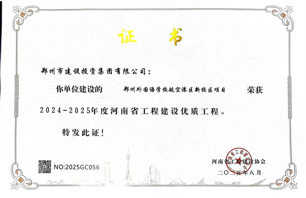 在各參建單位的共同努力下,該項目順利通過了河南省工程建設(shè)協(xié)會組織的優(yōu)質(zhì)工程評選,榮獲了2024-2025年度河南省工程建設(shè)優(yōu)質(zhì)工程。